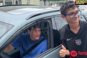 巴萨后卫克里斯滕森在车内与球迷亲切合影,《世界体育报》记者询问他在巴萨的未来,这位29岁的丹麦球员没有回答。