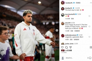 本场比赛新援路易斯-迪亚斯破门,打进拜仁生涯首球,他也在个人社媒晒出本场入场时照片,配文写道:“以最好的方式开启新赛季🏆❤️”